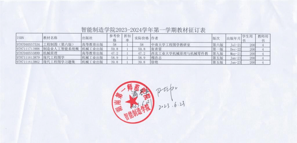 品色堂 2023-2024学年第一学期教材征订情况公示如下: