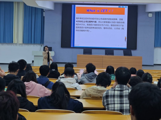 邀请外国语学院孙玉萍老师在玉衡南101教室为2023级新生做了题为“如何备考大学英语四级”的讲座,学院400余名学生分专业分批次参加了本次讲座。