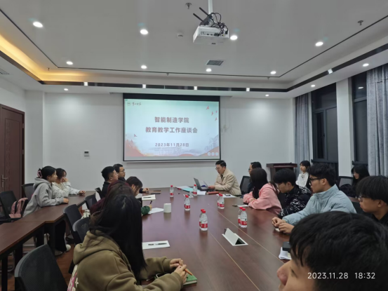 师生对课堂教学、实习实训及教育教学相关工作意见,了解学生的学习情况,促进教风学风建设,提高教学质量。学院于11月28日在百熙楼214会议室召开了本学期教育教学工作座谈会与集中反馈会。院长满君丰、院党委副书记陈阳、副院长蔡颂、副院长白斌、工业智能系系主任马俊杰、院督导、教科办主任李彩琴、各班班主任及学生代表参会。会议由副院长白斌主持。