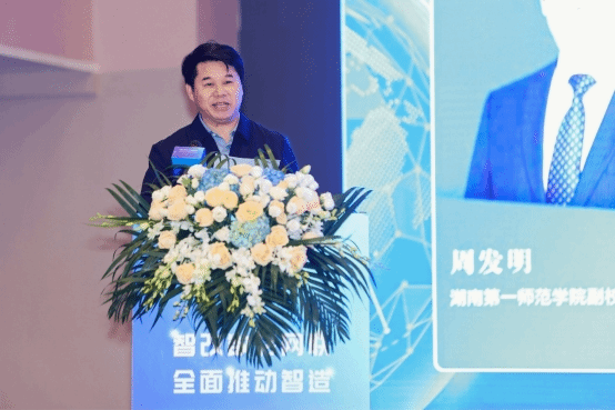 副校长周发明在会议致辞中提到,3月18日习近平总书记莅临学校考察,指出“现在世界又处于一个百年未有之大变局,国家要强大,必须办好教育。”随着新一轮科技革命和产业变革的到来,数字化、多元化、个性化、智能化成为教育发展的新趋势。多学科交叉融合、产教融合成为教育创新发展的新特色。本次论坛既是新机遇下学校把握形势汇聚优势的具体举措,也是新挑战下校企强化融合共育人才的积极事件。我们要认真贯彻习近平总书记考察湖南及学校重要讲话精神,面向智能制造产业重大需求,进一步深化教育教学改革,培养出更多具有创新精神和实践能力的高水平数字化人才,为培养和发展新质生产力做出新的更大贡献。