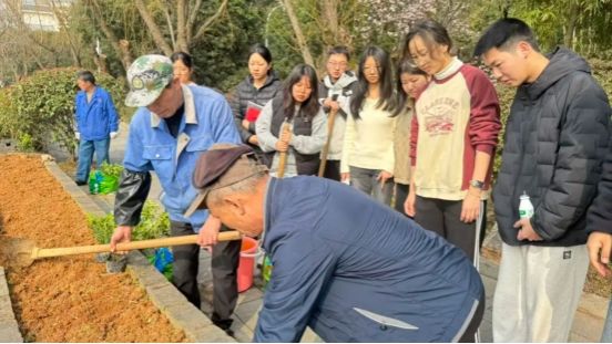 在技术人员的带领下,志愿者们来到各自认领的花坛区域,认真投入到劳动中。大家齐心协力拔除死树枯枝、挥锹松土、施入底肥,小心翼翼栽下新苗,并浇灌定根水。劳动结束后,一块块印有学院标识的“责任冠名牌”被稳稳当当地插入花坛,从这一刻起,这片绿色有了专属守护者。未来将由同学们负责花坛的日常照看与养护,让绿意在日常守护中生生不息。