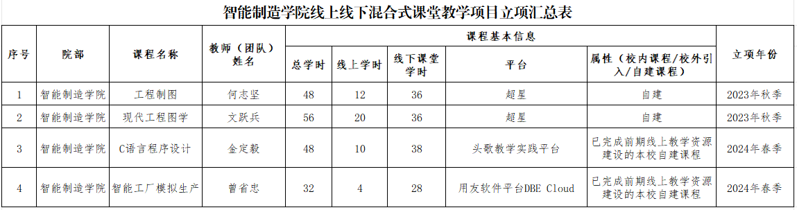 品色堂 线上线下混合式课堂教学项目立项汇总表