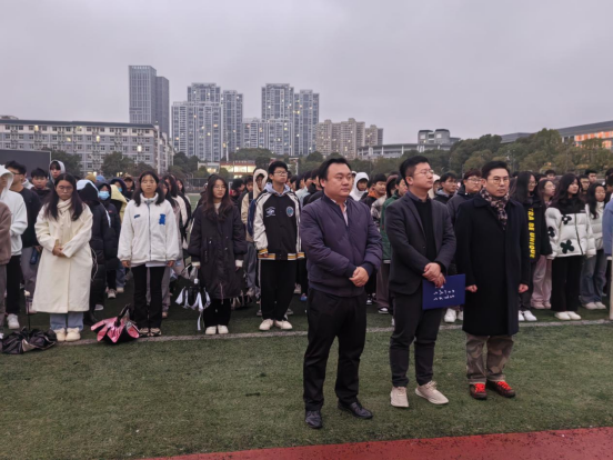 在校田径场举行升旗仪式,院长满君丰、副院长蔡颂、副院长白斌、学工办主任梁洋及学院405名学生参加了升旗仪式。仪式由院党委副书记陈阳主持。